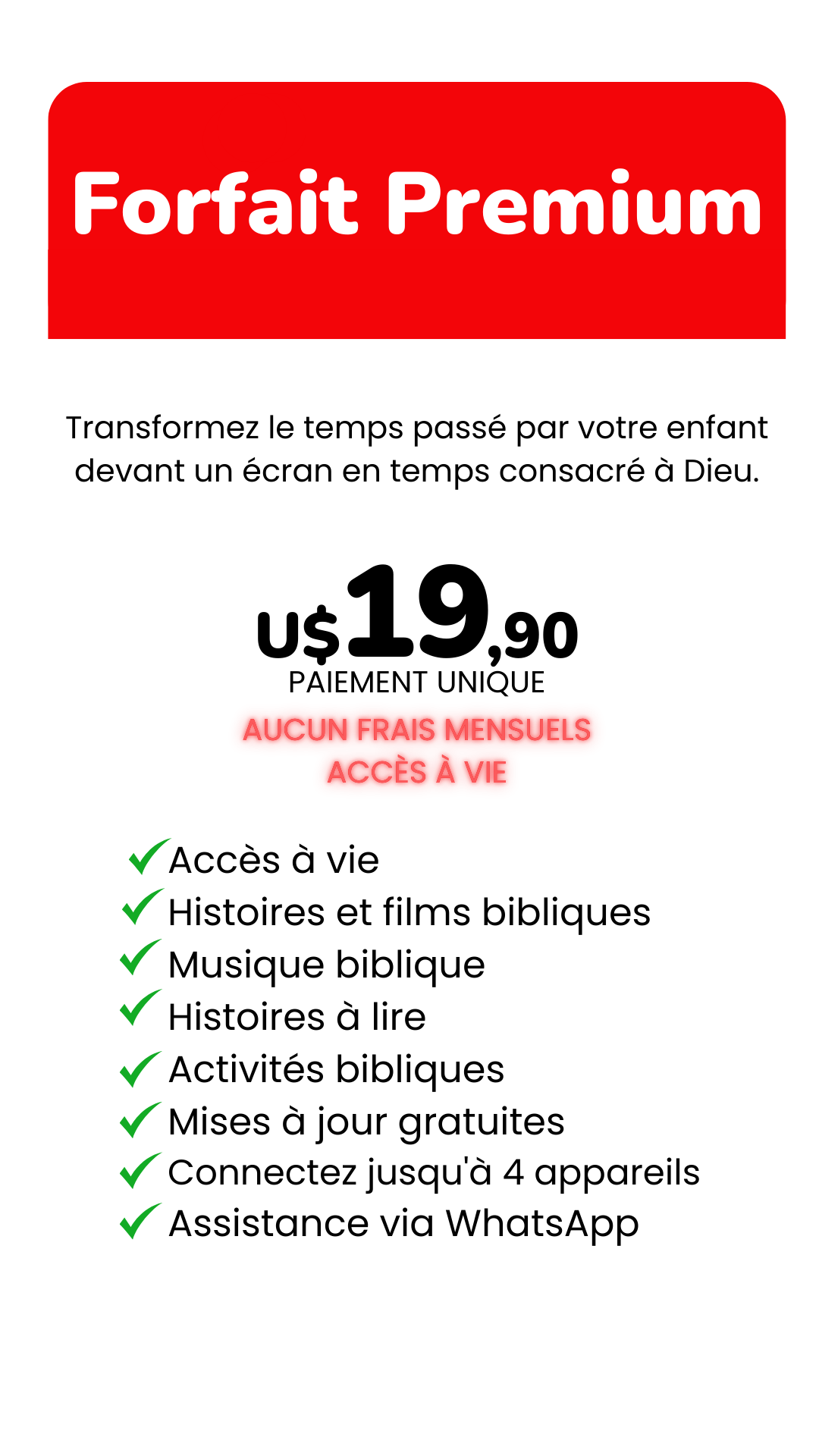 Compatible avec n’importe quelle Smart TV, vos enfants vont s’amuser tout en regardant les importantes leçons de la Bible.