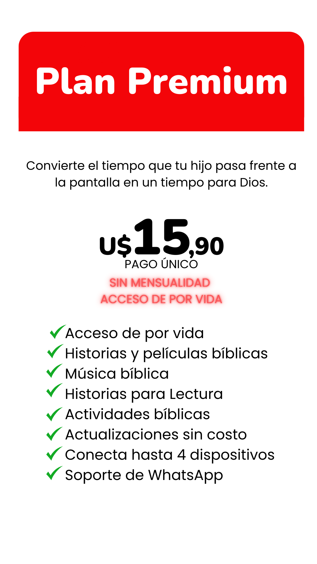 Compatible con cualquier Smart TV, tus hijos se divertirán mientras aprenden las lecciones importantes de la Biblia.